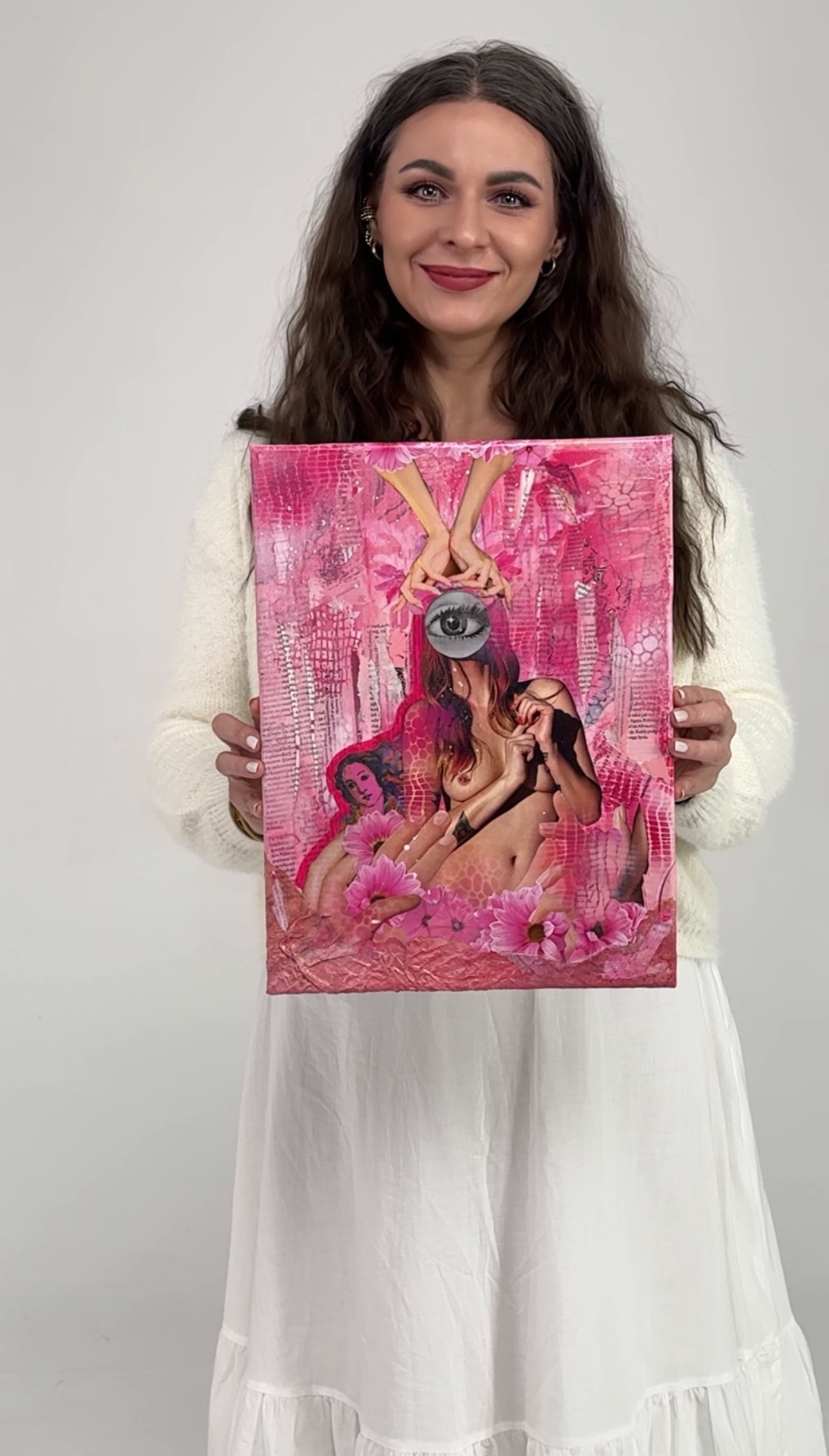 From fragments of body, color, and emotion, a story of femininity, strength, and hope emerged. This collage was born from the need to speak about what is often left unspoken: the female body, fear, and the strength that returns. Pink is more than a color. It is a story.