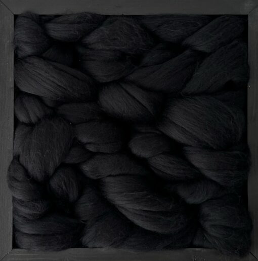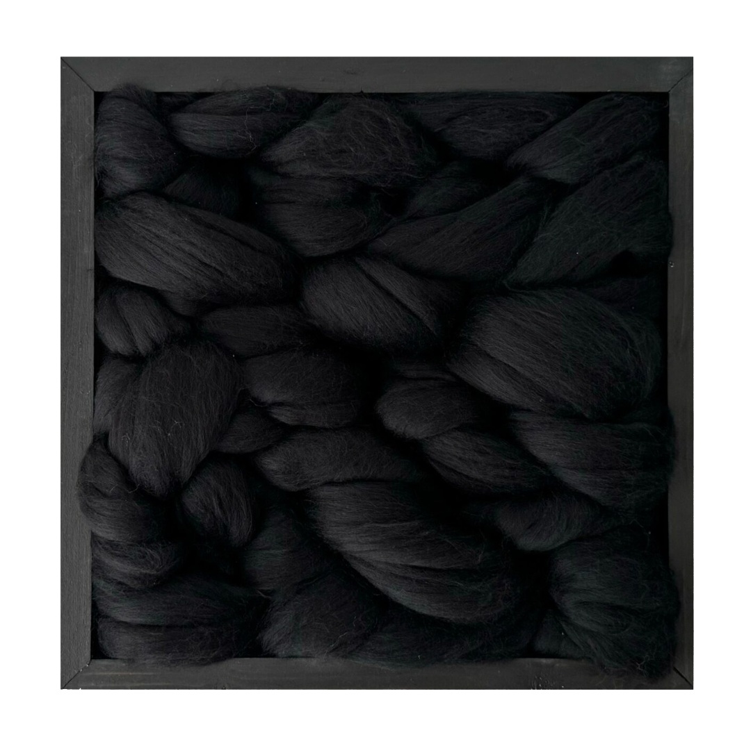 Crafted from the finest black merino wool, embodies depth and sophisticated power. The rich, dark fibers create a captivating interplay of texture and form, where subtle shadows and intricate patterns emerge with quiet intensity. The deep black hue enhances the complexity of the weave, inviting viewers to experience its understated beauty and elegant simplicity. This artwork speaks to the quiet strength of darkness, offering a contemplative journey that celebrates the profound elegance found within the depths of black.
